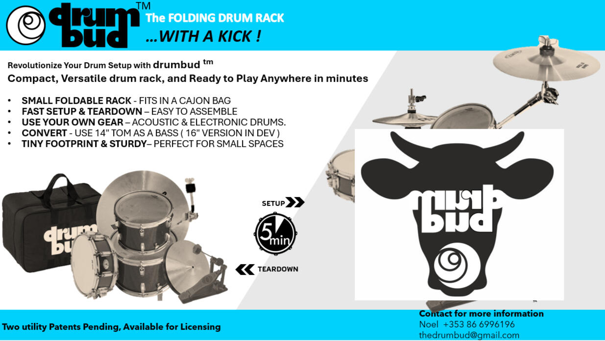 A new FOLDABLE DRUM RACK for anyone who LOVES plays the Drums. If you want to play drums anywhere and you want portability and the Convenience of a quick setup and teardown - then read on.Unlike other portable drumming options, this is first SMALL and LIGHT Foldable Drum Rack with an integrated kick stand that enables any DRUMMER to get their OWN drums on and get rocking IN under 5 minutes.